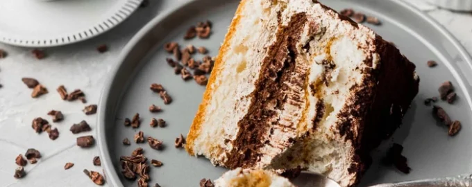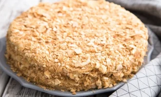 - Pastayı birleştirin: çikolatalı ve beyaz kek katmanlarını dönüşümlü olarak yerleştirin, kremayla yağlayın. Bitmiş pastanın üstünü kremayla yağlayın ve kalan keklerin kırıntılarını serpin. En az 6 saat buzdolabında bekletin.