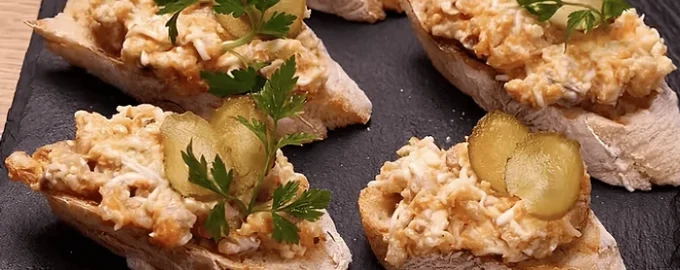 Fotoğraf: açık kaynaklardan Bu atıştırmalık hem sıcak hem de soğuk olarak lezzetlidir. Festival masasında veya büfe masasında doldurulmuş petrolleri servis